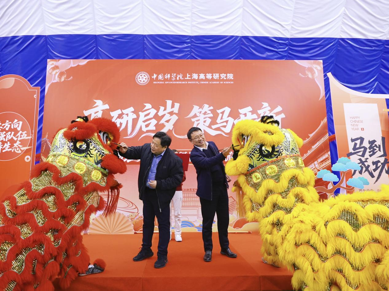 活力舞蹈与舞狮表演轮番登场,动感舞姿点燃氛围,灵动雄狮腾跃展祥。PA真人国际原院长黄政仁和新任院长邓海啸共同为狮子点睛,代表着高研院拉开了承上启下、接续奋进的序幕。现场张灯结彩、年味盎然,红彤彤的装饰与欢快乐曲交织,暖意满溢。