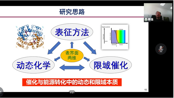 傅强研究员以“催化与储能过程的原位表界面研究”为题做了精彩的报告。报告从如何将传统的表面化学方法学从超高真空条件下的模型表面体系拓展到气-固和液-固界面体系这一表面科学领域中的重大挑战出发,介绍了近年来包括其实验室成功开展的近常压光发射电子显微镜在内的多种表面技术在能源和催化中的应用:如气氛条件下的催化过程表征实现原位表界面催化研究、电场施加条件下储能器件的在线表界面表征,实现表界面电化学研究等。最后,基于这些研究进一步展望了实现液-固界面表征研究中的挑战和解决途径。