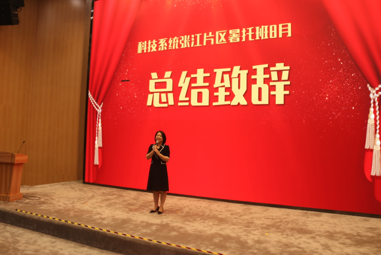 陈敏在结班致辞中指出,设在高研院的暑托班,是科技系统职工子女暑期托育专项关爱行动首次在张江地区开设的试点,得到了科技系统党委和妇委的高度重视。在高研院领导的大力支持下,张江片区暑托班在场地、餐饮、后勤、师资和教学管理上均得到了全面最优保障。尤其是中科院系统科学家们上门讲授的科普课,更成为该试点最为亮眼的特色项目。