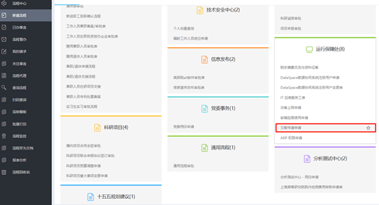 (1) 用户登录高研院OA系统—新建流程—在信息中心模块找到“文献传递申请”;