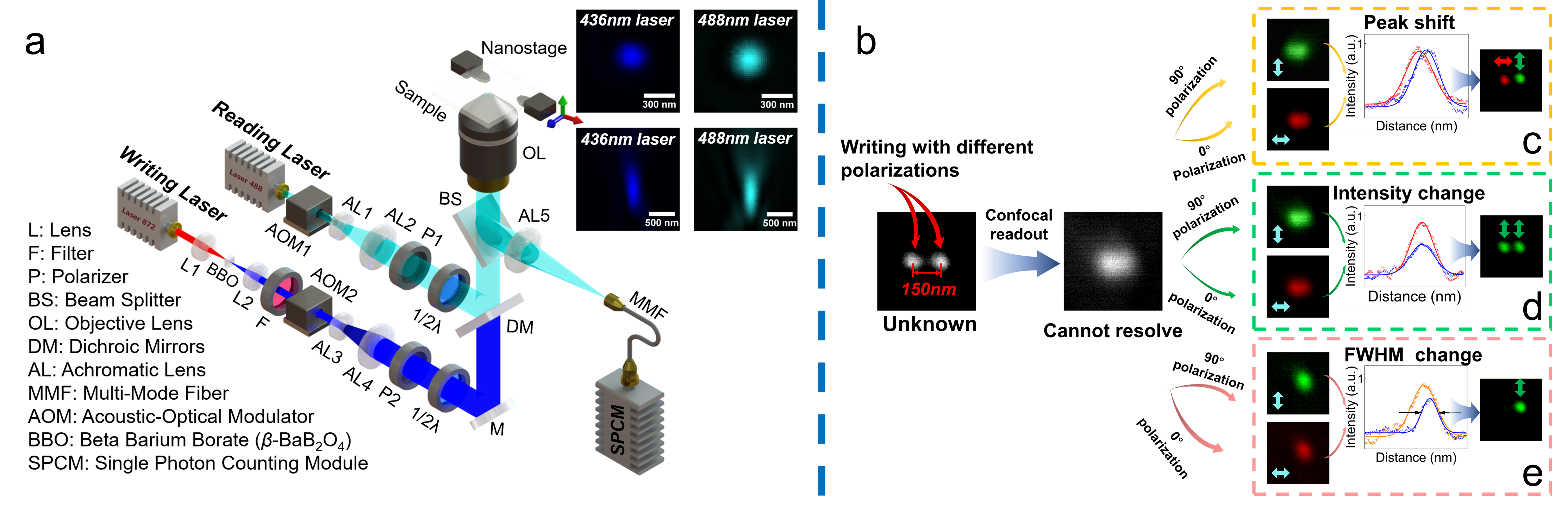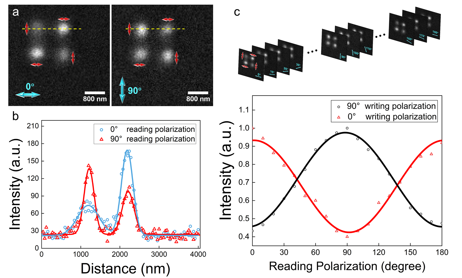 基于此,本课题组提出了一种基于偏振调制的超高密度光存储亚衍射极限读出方法。与传统的顺利获得荧光信号实现超分辨读出的方式不同,我们利用读出光束的不同偏振来调控衍射极限内反射信号的强度变化,顺利获得反射信号的变化解调出对应偏振编码的存储信息,如图1所示。