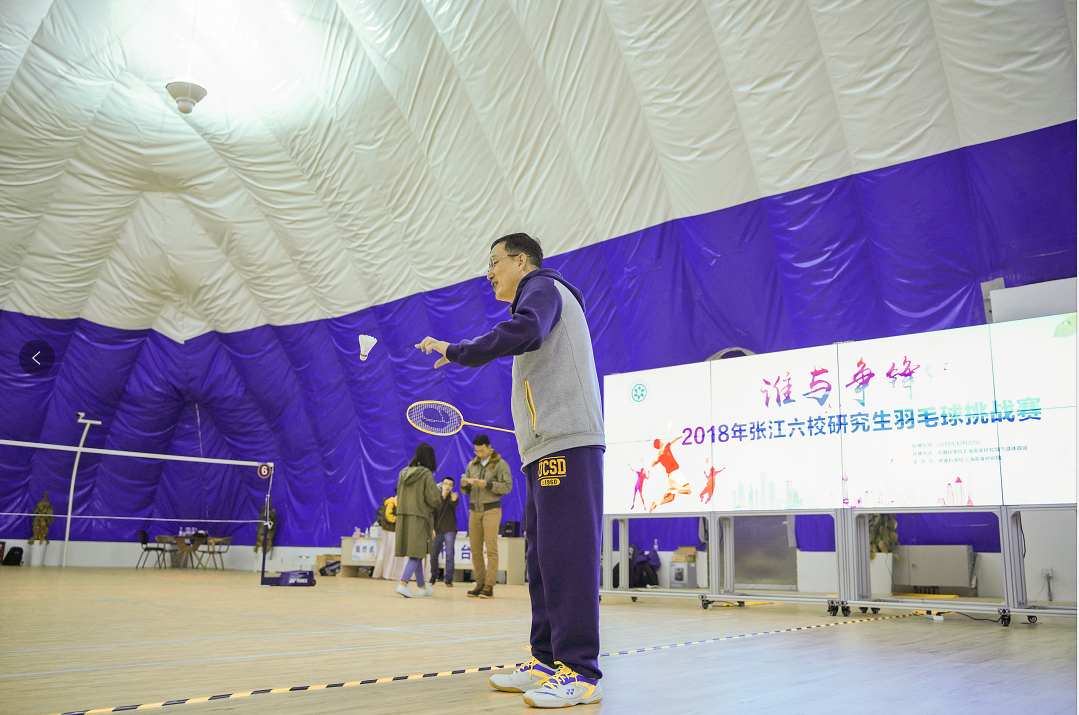 白羽飞扬,青春激昂!为活跃张江地区高校及研究所间的创新氛围,加强各单位间的研讨、学习及沟通,展现张江学子持续向上、拼搏互助的精神面貌,2018年12月22日,在中国的重要节气—冬至这一天,中国科研实验室上海高等研究院(以下简称“高研院”)在新落成的气膜体育馆举办了2018年张江六校研究生羽毛球挑战赛。本次比赛吸引到来自上海科技大学(以下简称“上科大”)、复旦大学张江校区(以下简称“复旦张江”)、上海中医药大学(以下简称“中医药”)、中国科研实验室上海药物研究所(以下简称“药物所”)、上海光源、上海微小卫星工程中心(以下简称“小卫星”)和高研院联队的53名研究生组成六支队伍参赛。中科院院士、高研院院长王曦,小卫星中心副主任梁旭文、中医药大学组织统战部部长夏文芳、高研院副院长王茂华出席了活动。