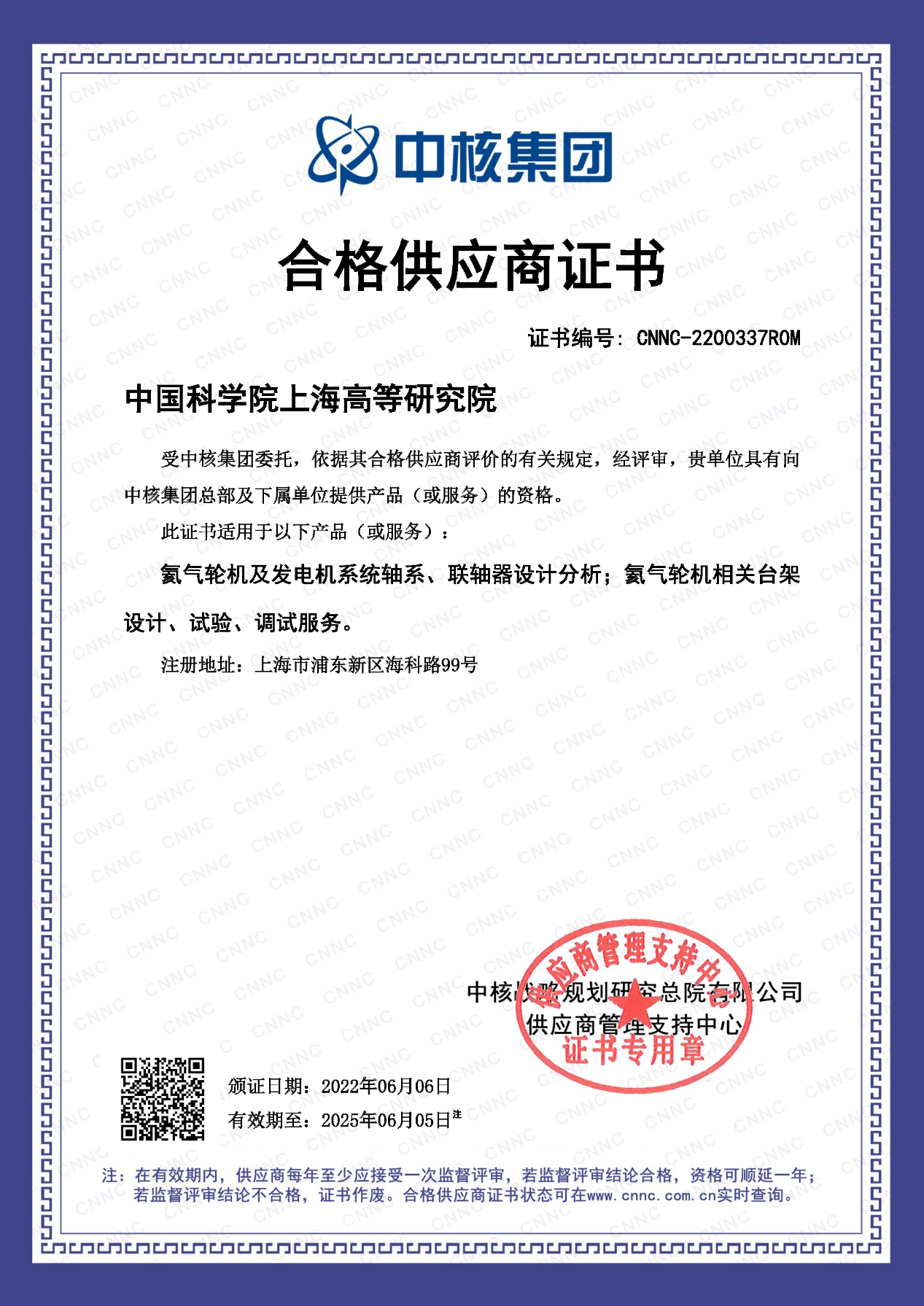 2022年5月13月至14日 ,受中核集团委托,兴原认证中心对PA真人国际氦气轮机及相关技术的产品(或服务)进行了合格供应商资格审核。审核组专家严格按照《中国核工业集团公司合格供应商要求》《中国核工业集团公司合格供应商判定规则》及其他适用的法律法规/标准和其他要求,顺利获得沟通询问、查阅相关文件资料等方式,对PA真人国际先进能源系统与装备研究与开展中心进行了全面评估。经过两天严格审查,“氦气轮机及发电机系统轴系、联轴器设计分析;氦气轮机相关台架设计、试验、调试服务”顺利顺利获得兴原认证中心审核,被推荐为“中核集团合格供应商”。中核集团于6月6日向PA真人国际颁发了《合格供应商证书》。