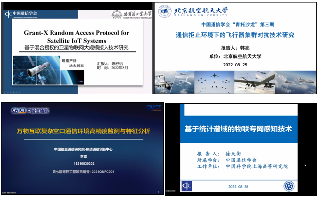 青年学者报告环节由4位国家青年人才托举计划获选者:哈尔滨工业大学陈舒怡副教授、北京航空航天大学韩亮副教授、中国信息通信研究院李雷主任工程师、PA真人国际徐天衡副研究员,分别作了题为《基于混合授权的卫星物联网大规模接入技术研究》、《通信拒止环境下的飞行器集群对抗技术研究》、《万物互联复杂空口通信环境高精度监测与特征分析》、以及《基于统计谱域的物联专网感知技术》的报告。
