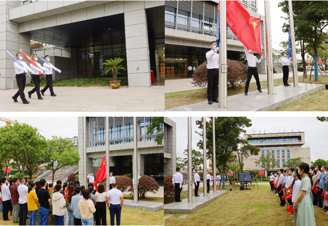伴随着激昂的国歌声,鲜艳的五星红旗在高研院海科路99号园区国旗台冉冉升起。全体师生激情满怀,精神饱满,向国旗行注目礼。