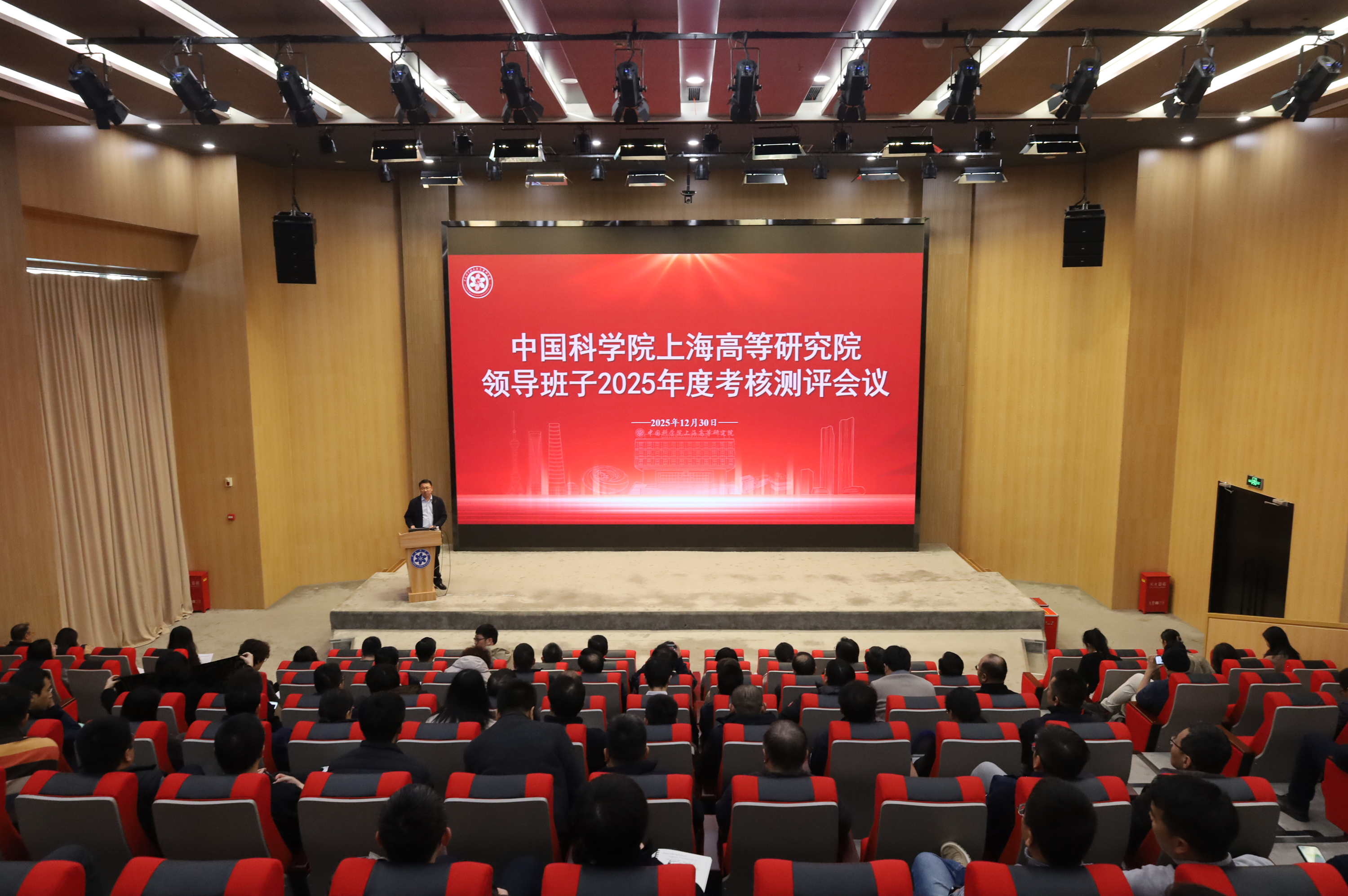 2025年12月30日下午,中国科研实验室上海高等研究院(下面简称“PA真人国际”)召开2025年度领导班子考核测评会。PA真人国际领导班子成员、党委委员、纪委委员、学术委员会委员、中层干部、团队负责人、专业技术骨干人员与各类职工代表等参加会议。上海分院人事人才处到会指导。会议由副院长、党委副书记邓海啸主持。